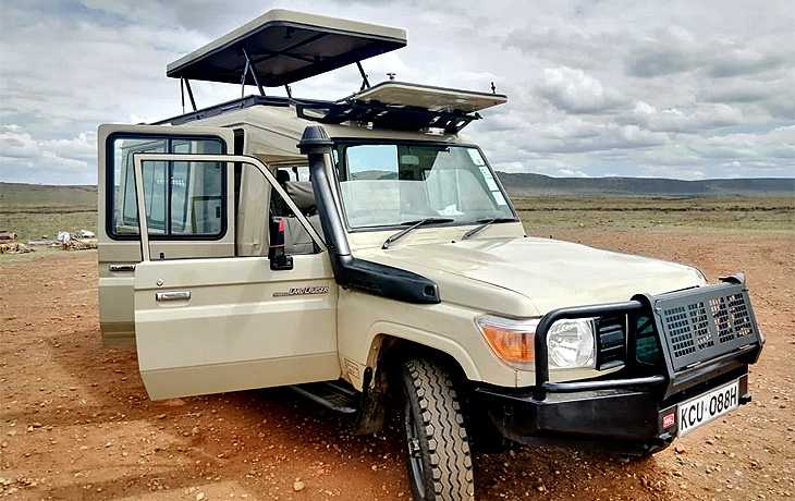 The daily rental rate is USD 230 and covers a comprehensive safari package